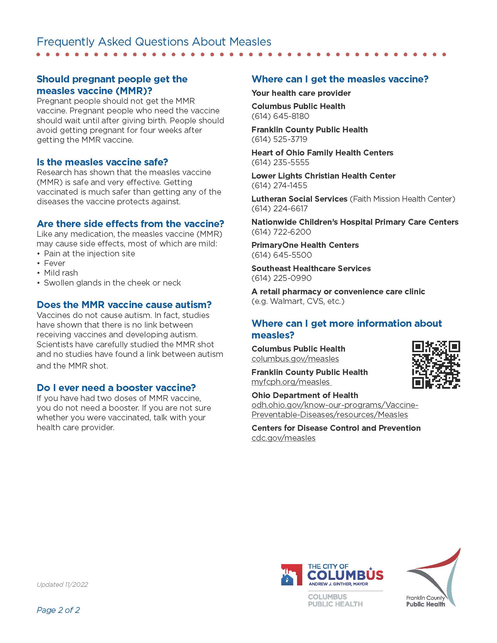 For more information on Measles and other immunizations you can visit : https://odh.ohio.gov/know-our-programs/immunization/media/measles-faq and https://www.cdc.gov/measles/vaccination.html